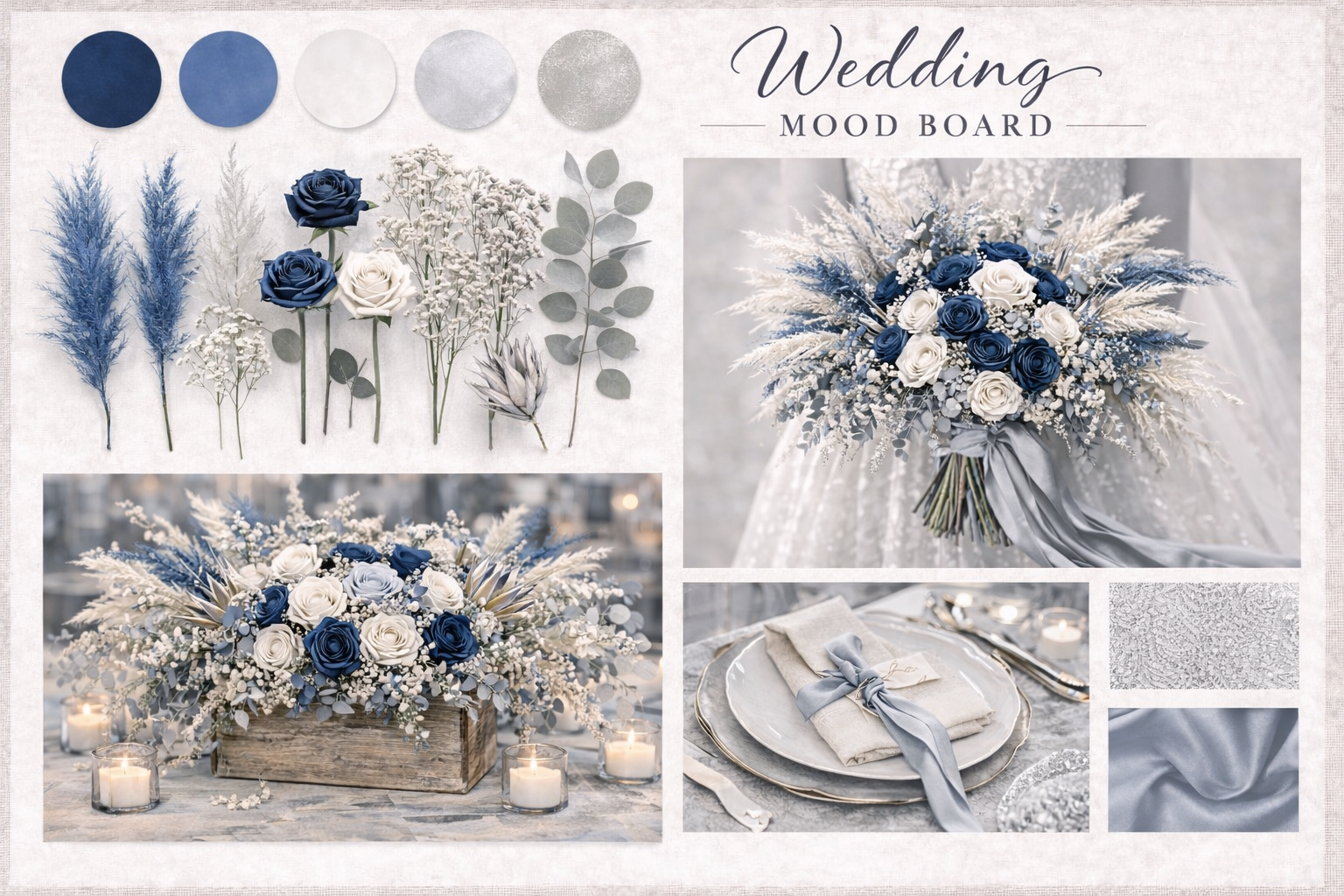 Trending colours and designs for 2027. Choose one of the above combinations or mix and match to suit your style. Or you can browse other mood boards available on this site. Remember these are purely for inspiration. Once you have booked our services we will send you a bespoke board with your own colour scheme, floral display suggestions and recommended flowers.